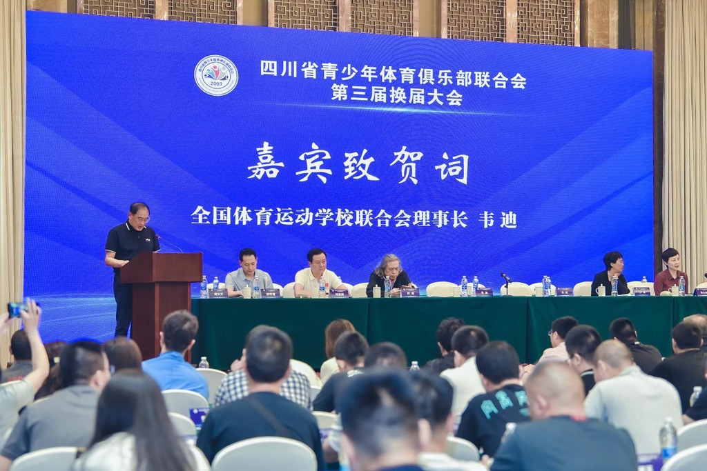 5月28日,四川省青少年体育俱乐部联合会第三届换届大会在成都温江隆重召开。全国体育运动学校联合会理事长韦迪先生、常务副理事长刘亚群先生,四川省体育局朱明副局长,中国中学生体育协会副主席林强先生等领导嘉宾莅临了本次会议。来自全省各地市州共计200余家国家级会员单位及青少年体育组织共同出席。