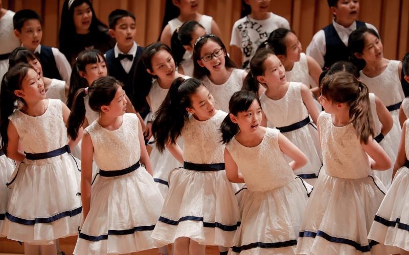 音乐会以欢快热情的“打起手鼓唱起歌”开篇,充满活力的少年们迎面扑来的蓬勃朝气带动了每一位观众。预备班用欢快与诚挚的歌声带来《嘀哩嘀哩》《感恩的心》《歌声与微笑》,孩子们带着灿烂笑容,在流动的声部、灵动的表达中用音乐庆祝自己的节日,也诉说着款款深情。