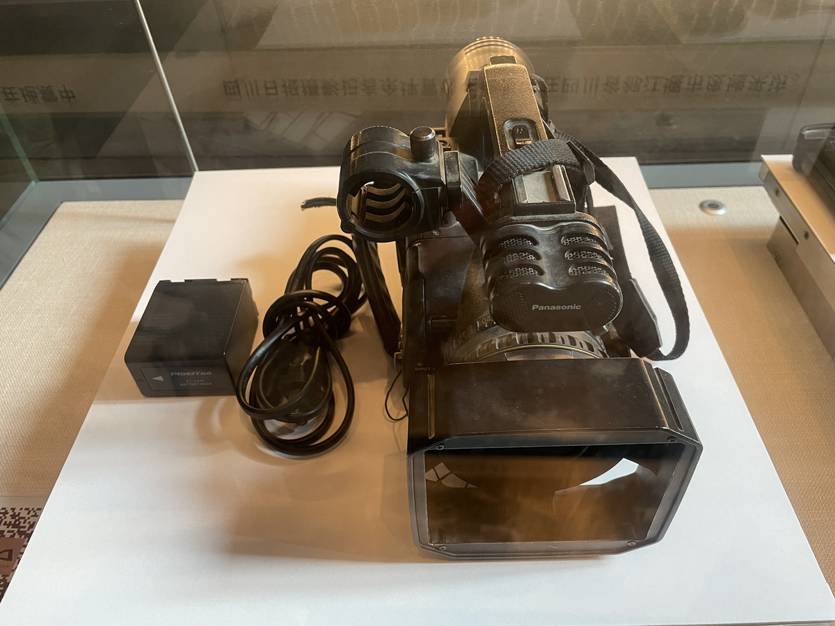 纪念馆一楼展厅中,陈列着一台第一时间记录北川老县城地震发生情况的摄影机。王华蓉告诉记者,5·12汶川特大地震发生当天,北川县委礼堂正在举办五四青年表彰大会,“大会刚刚开始,地震就发生了,”在震后逃生的混乱中,这台摄影机被丢在了地上。过了一分多钟,地面摇动结束之后,时任北川县曲山镇大水村党支部书记唐祖华在准备从礼堂后门出去救人时捡到了这台摄影机,他捡起摄影机,拍下了震后北川县委大礼堂和北川中学的震后场面。