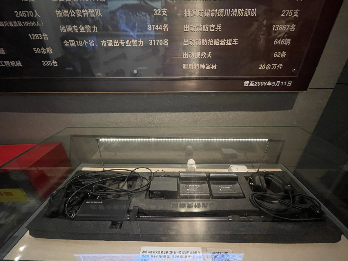 汶川特大地震发生后,如何抓住救援黄金72小时,尽可能多地抢救灾民,成为了抗震救灾初期最紧迫的任务。在纪念馆中,陈列着一件海南救援队驰援北川时使用过的光学生命探测仪,将我们的记忆拉回到了那个与死神争分夺秒的救灾时刻。