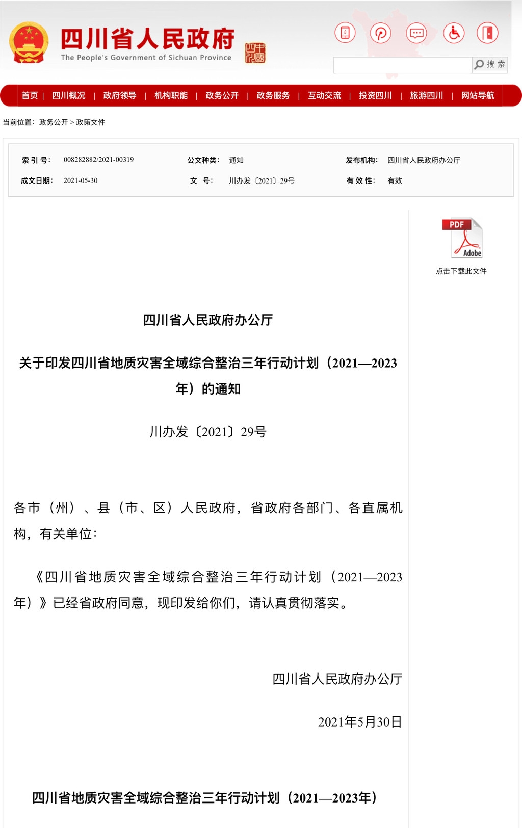 下一步,我省还将推动制定四川省地质灾害防治条例等地方性法规,完善地质灾害全域综合整治项目管理、资金管理、地质灾害风险管控等制度。