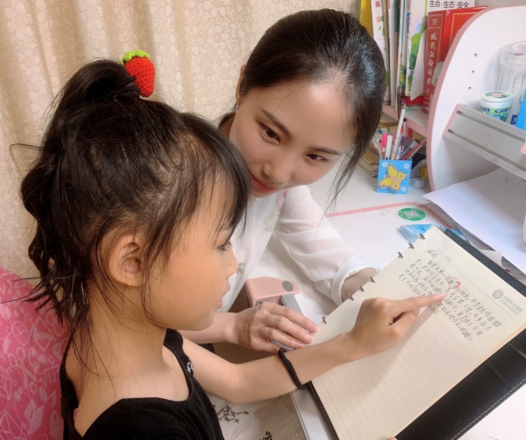 安镇纪委书记李婧陪着女儿写“小班长的廉洁保证书”