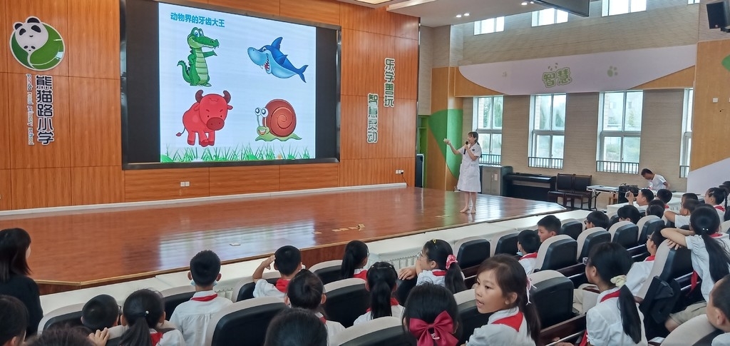 成都市金牛区康仁美医疗的医生为学生们进行口腔保健护理讲座。