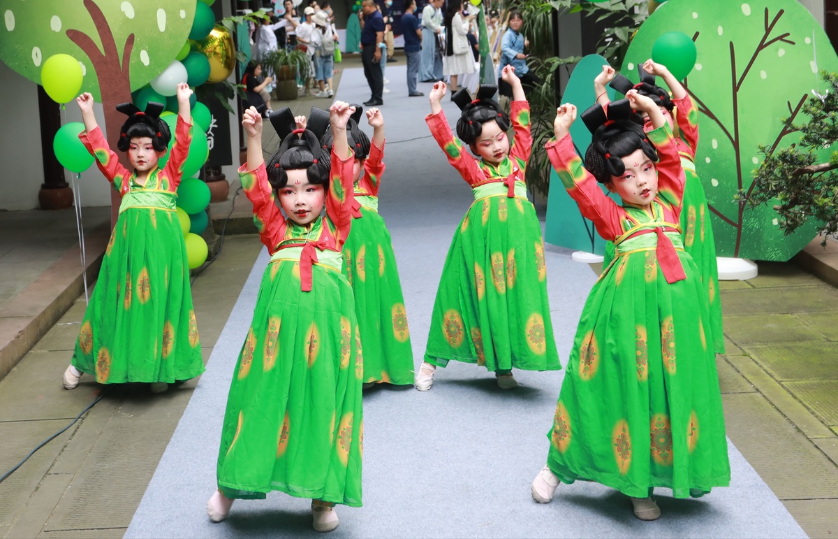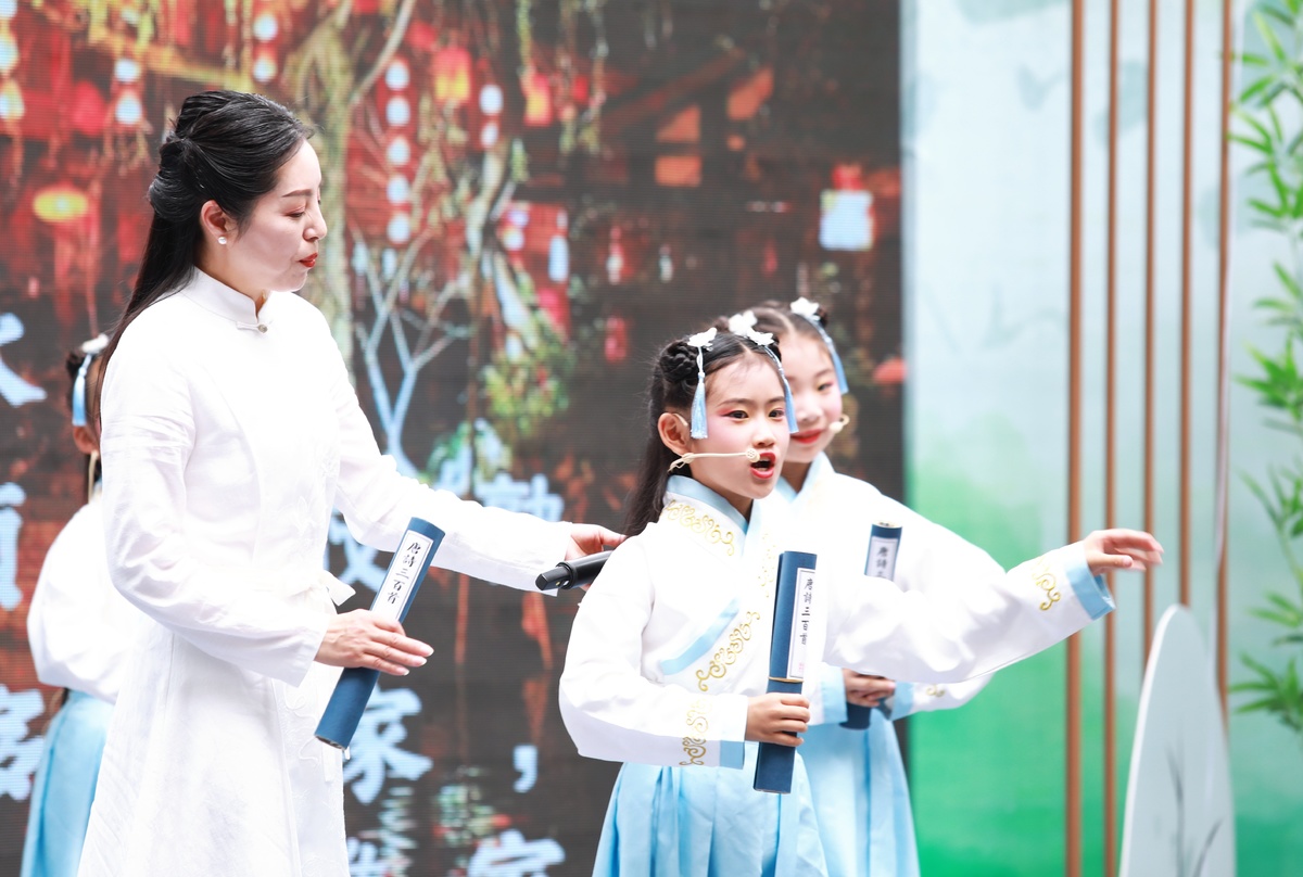 活动现场,“少儿诗艺·大舞台”上演一台少儿诗歌主题沉浸式演出;节目有戏剧《天府诗圣》和《月光草地》,朗诵《少年中国说》和《青春中国》,歌曲《春夜喜雨》和器乐《英雄赞歌》等。