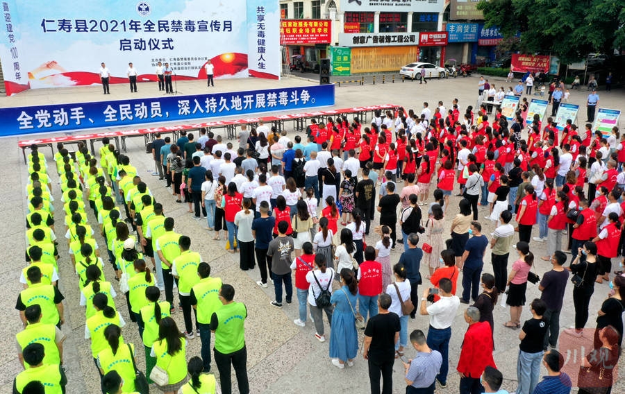 为掀起禁毒宣传教育热潮,广泛动员社会力量参与禁毒斗争。6月1日,仁寿县启动“喜迎建党100周年,共享无毒健康人生”为主题的全民禁毒宣传月系列。通过禁毒签名、参观禁毒成果展、发放宣传资料等形式,提高群众防毒、识毒、拒毒意识,在全社会形成自觉抵制毒品的浓厚氛围。
