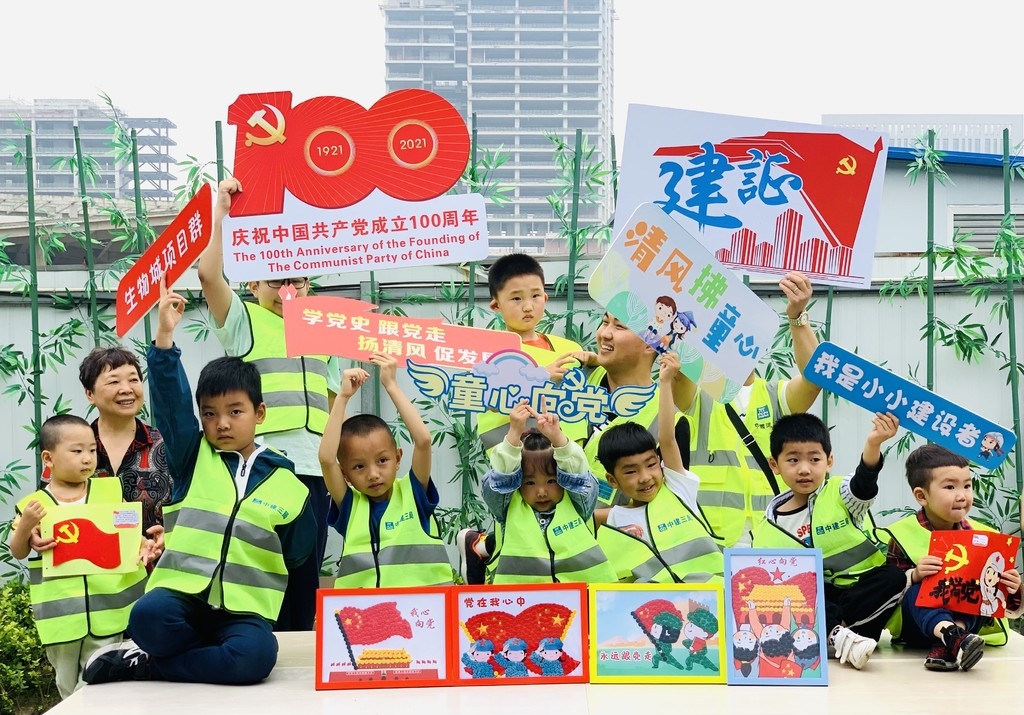 当天,小建设者们还与爸爸妈妈一同制作红色手工艺品,在享受亲子游戏乐趣的同时,为建党百年献上自己的祝福。