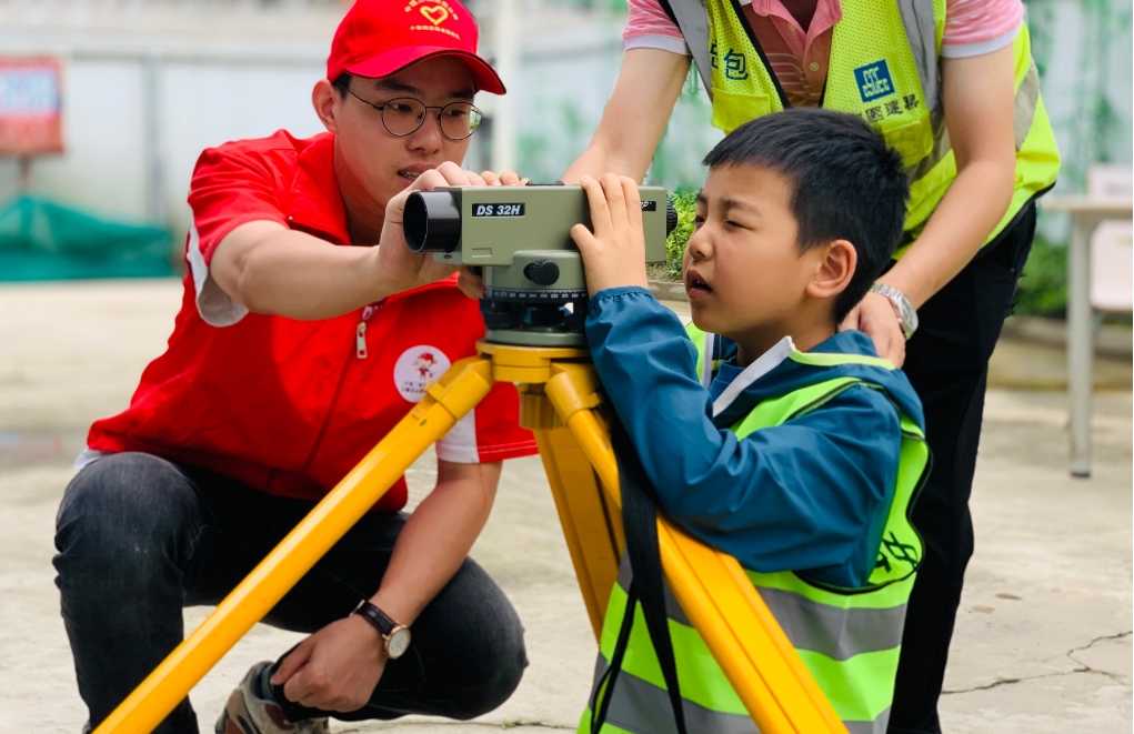 “爸爸说他在建设生物城,有一座神奇的实验室,里面还有好多科学家做研究怎么打败新冠病毒呢”,“建二代”星星自豪地说,他的父亲是四川省首个P3实验室的建设者。活动中,小小建设者们认真听志愿者讲述建筑工地上的点点滴滴,同时,在志愿者带领下,小朋友们完成了父母岗位体验,了解自己爸爸妈妈的工作岗位,在现场参与检查配电箱、放线测量等。