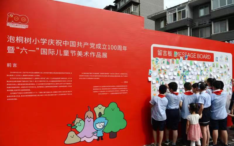 5月30日—6月1日,“桐心向党桐绘梦想”泡桐树小学庆祝中国共产党成立100周年暨“六一”国际儿童节美术作品展在宽窄巷子东广场举办。