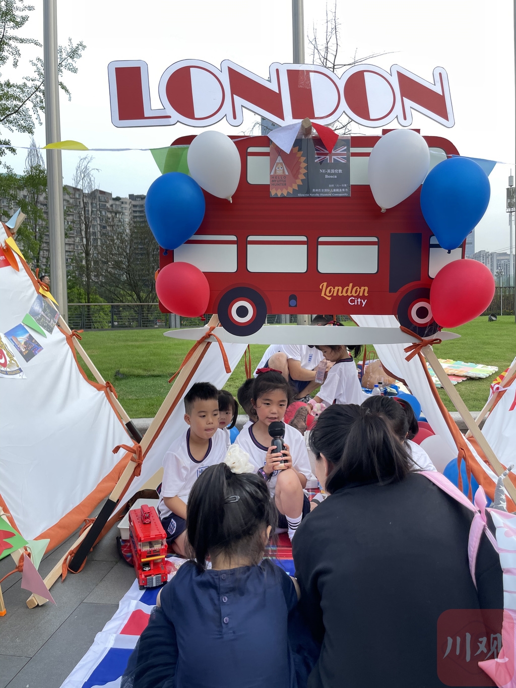 这是由成都高新区新经济局指导、捷中教育交流协会主办的“奥林匹亚国际儿童跳蚤集市”—你的别样六一国际儿童节公益活动。主办方精心挑选了100顶帐篷,代表全球100个城市,如法国巴黎、澳大利亚堪培拉、斯洛伐克布拉迪斯拉发等,由100位申领帐篷的小主人精心装扮以展示各国文化特色。
