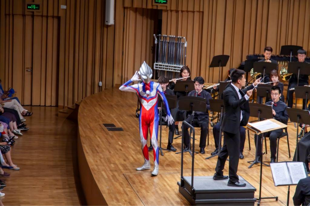 音乐会现场,奥特曼、龙猫的经典动漫人物形象亮相城市音乐厅,他们随着音乐节奏舞动,与孩子们亲密互动,为孩子们送上六一祝福。