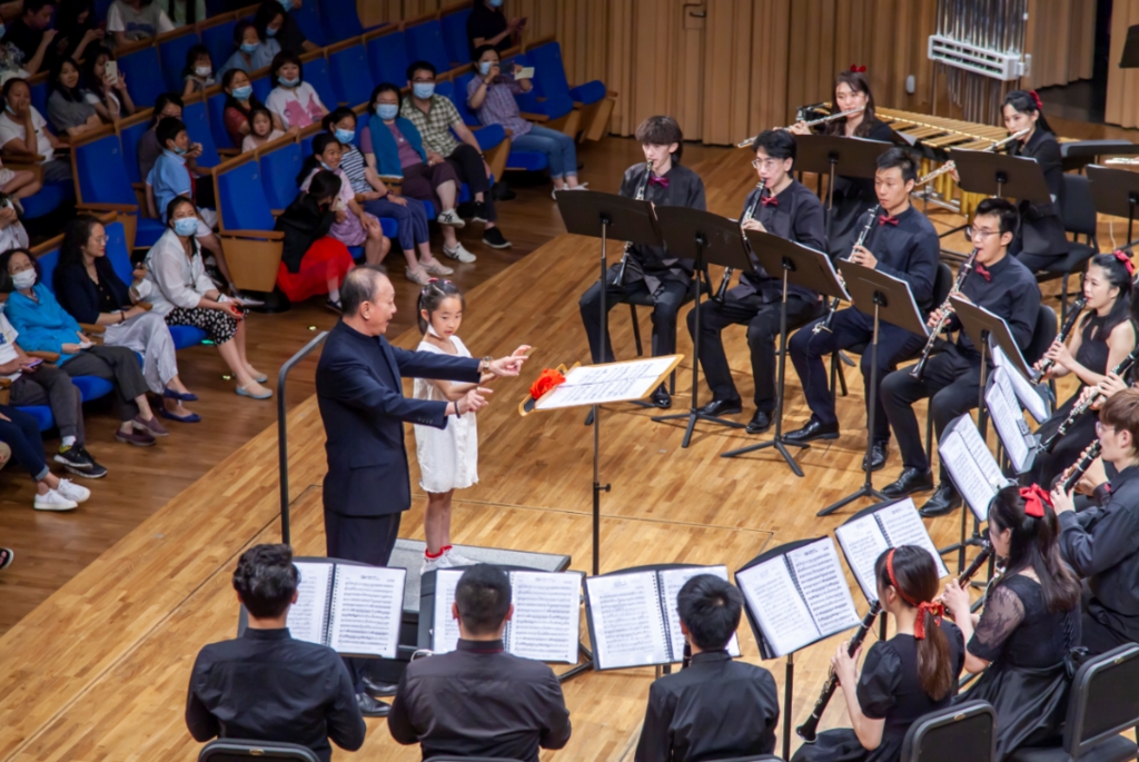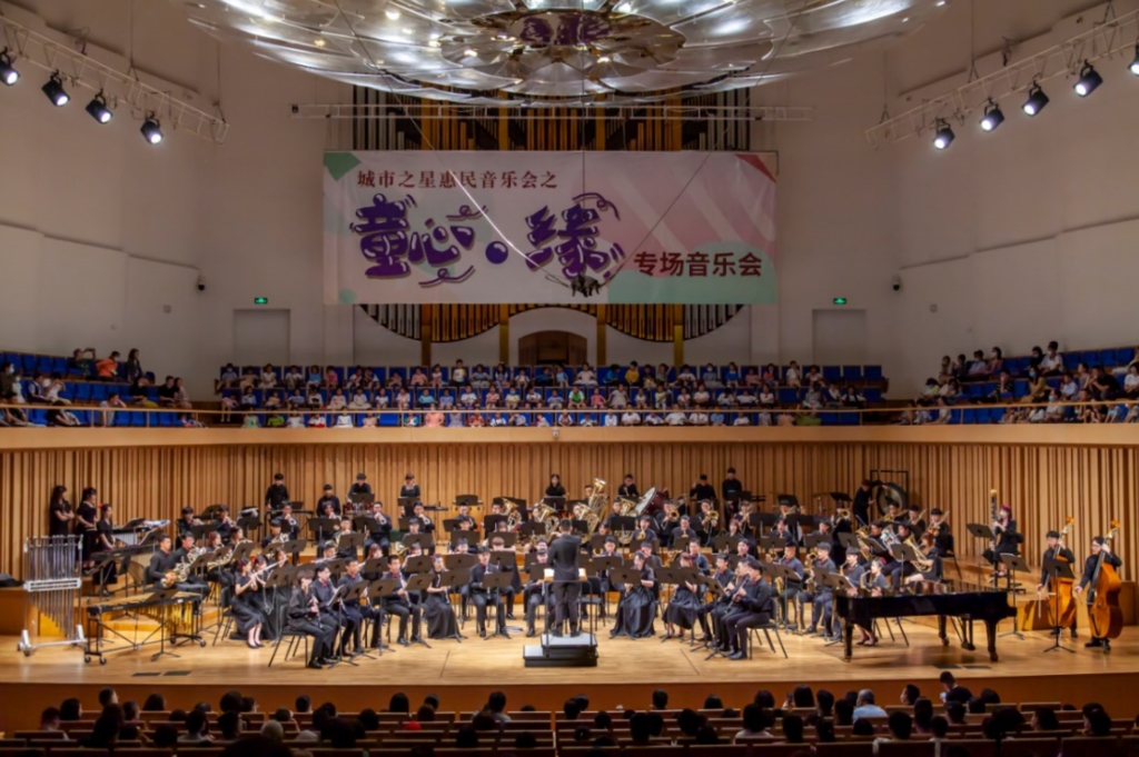 由成都城市音乐厅主办的城市之星惠民音乐会《童心·缘》在婉转悠扬的管弦声中、激情热闹的鼓点声中拉开帷幕。本场音乐会以儿童节为契机,特别邀请到来自四川音乐学院管乐团、四川音乐学院附属小学管乐团、成都七中育才学校管乐团的演奏家们为孩子们带来一场经典的动漫音乐会。当晚300多名儿童前往音乐厅观看了演出,为了鼓励孩子们重视音乐会礼仪,让这场音乐会充满仪式感,现场还特别预留出贵宾区,邀请正装出席的小朋友入坐,与演出嘉宾亲密互动。