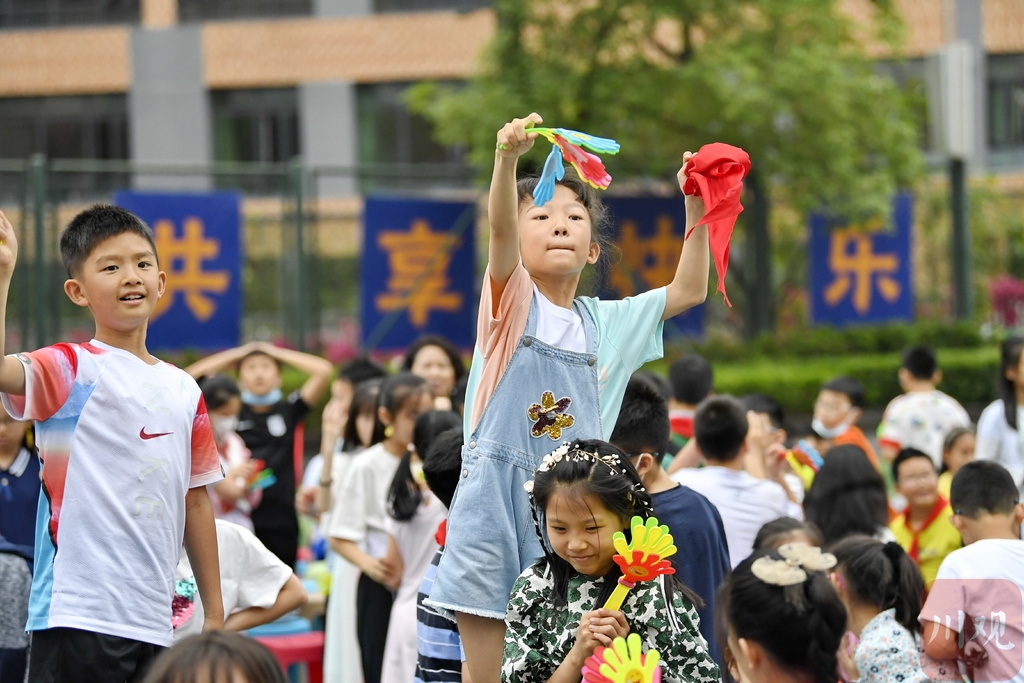 6月1日,成都外国语学校高新美年校区举行了“童心向党,快乐成长”——庆祝建党100周年暨六一文艺汇演系列活动。在校级文艺汇演中,多才多艺的老师和学生们带来童声合唱、快板、戏剧表演、观看微电影等丰富精彩的节目,让孩子们通过生动有趣的学习方式从小知史爱党、知史爱国,懂得今天的幸福生活来之不易。
