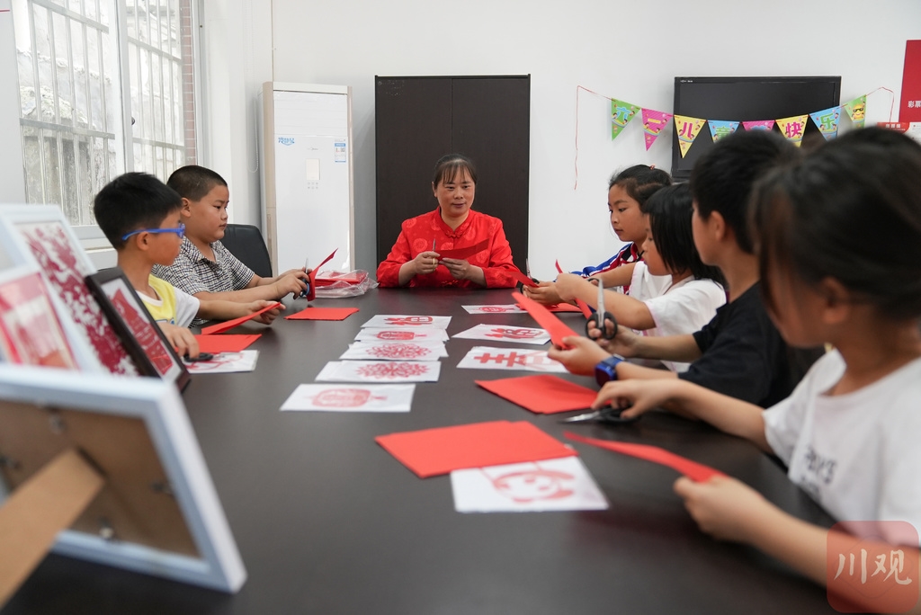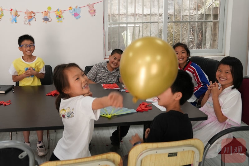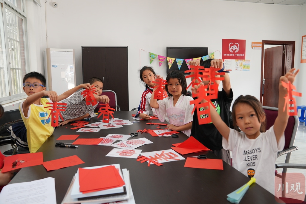 2021年“六一”国际儿童节之际,为让农民工子女度过一个愉快而有意义的节日,一场“童心逐梦庆六一 ”关爱农民工子女主题活动在青白江一小学举行。孩子们在剪纸老师的指导下认真创作出一幅幅剪纸作品;在游戏环节中,伴着儿歌声传递气球、展示才艺;在与父母视频连线时,倾诉心中的思念。