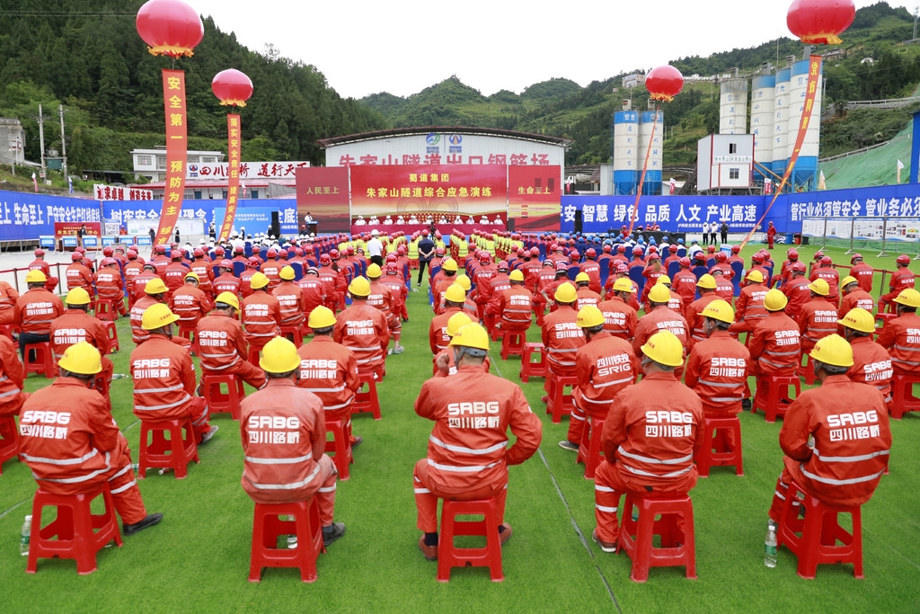 新成立的的蜀道集团将“安全生产月”作为该公司揭牌以来的第一个大型活动,在在古金高速朱家山隧道出口举行了隧道综合应急演练。通过模拟实战,以演代练,参建职工亲身参与突发事件应对处置,验证、检验应急预案的实用性和可操作性,及时改进、完善应对措施,以提升应对各类突发事件的应急处置能力。