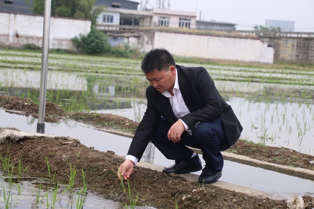 李相德正在查看秧苗长势 受访者供图