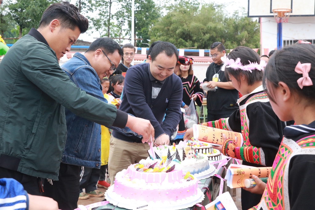 原来,他眼前这几个叔叔是乐山援助美故的第三批工作队员,随着援彝工作的交接,近日才刚到美姑。在儿童节这天,乐山的援彝干部带着书包、文具盒、套尺、篮球等丰富多样的礼物,来于美姑的孩子们欢庆“六一”。