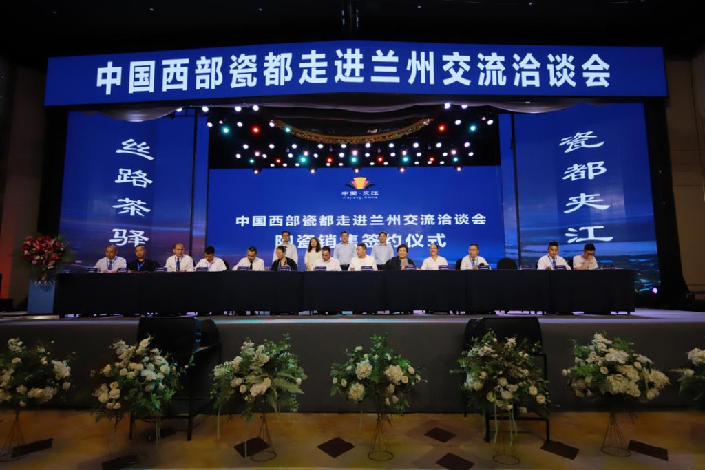 6月1日,“中国西部瓷都”走进兰州交流洽谈会在兰州名城广场滟金汇国际礼宴艺术中心举行。现场,6个兰州地区陶瓷经销商现场“牵手”夹江陶瓷,一举签下8.5亿元销售协议。