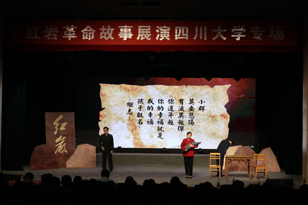 由重庆市委宣传部、重庆市党史研究室、重庆市教育委员会、重庆市文化和旅游发展委员会、重庆市退役军人事务局、共青团重庆市委员会、重庆大学教育部高校思想政工作创新发展中心、重庆红岩革命历史博物馆、红岩精神研究会联合举办的“红岩革命故事展演”走进四川大学,这也是自去年9月启动首场展演后举行的第200场。
