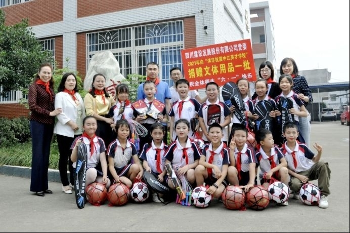 四川建设发展股份公司工会组织职工志愿者深入中江县永太镇英才学校为该校的100名农民工留守儿童捐赠了学习和体育用品,同时对该校特困家庭学生采取了一对一的结对子帮扶活动,每年对其进行帮扶。