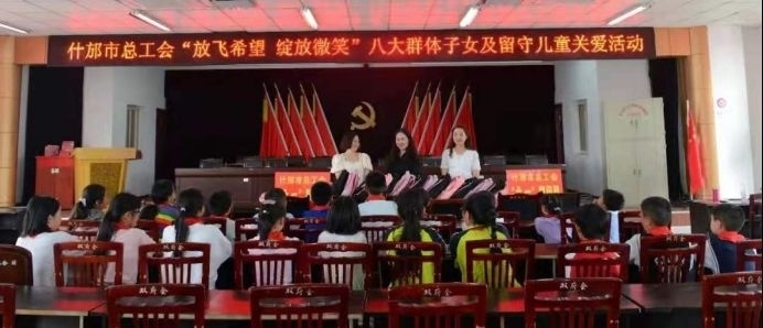 什邡市总工会开展“放飞希望 绽放微笑”职工(农民工)子女关爱活动,工会的叔叔阿姨分别来到什邡市特殊教育学校、什邡马祖、方亭街道看望慰问残疾儿童、八大群体及农民工子女,并送去价值1.8万元爱心礼包。