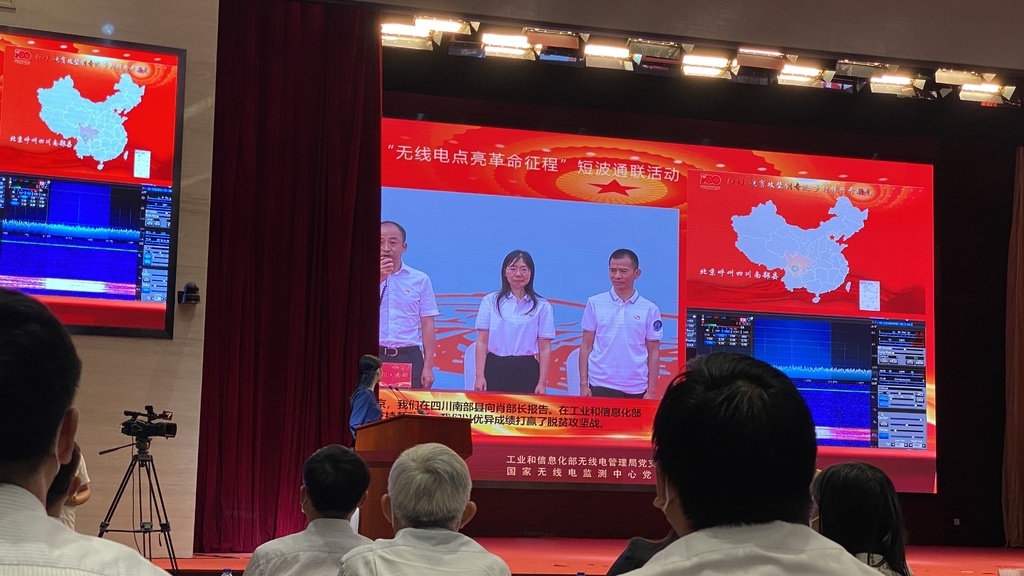 6月3日下午,由工信部主办的“无线电点亮革命征程”短波通联系列庆祝活动四川分会场活动在南充市南部县举行。当“精准务实、攻坚克难、成功脱贫”这句铿锵有力的话语从南部传到北京时,现场响起热烈的掌声。