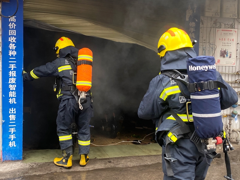 10时04分,救援力量到达现场,发现店铺的卷帘门处于关闭状态,户主联系不上,情况紧急。消防员根据现场情况立即分成灭火、破拆、警戒3组,破拆组立即对卷帘门进行破拆,利用破拆工具将卷帘门撕开后大量浓烟冒出,店内有少量明火,灭火组在门被破开的同时开展扑火工作,警戒组负责疏散现场群众并对现场实施警戒,10时08分,火势被扑灭,无人员受伤。