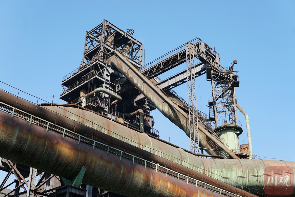 乘车进入攀钢钒炼铁厂厂区,拐过几个路口,远远望见攀钢一号高炉矗立在纵横交错的管网间。