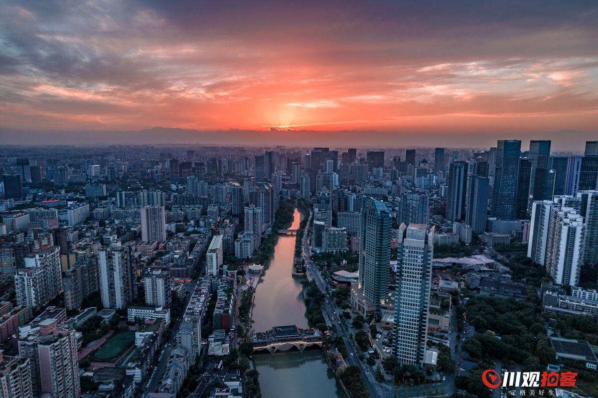 6月4日,成都傍晚惊现绝美晚霞,天空被染成橘粉色和紫粉色,绚丽夺目。市民们纷纷拍下美照刷爆朋友圈。