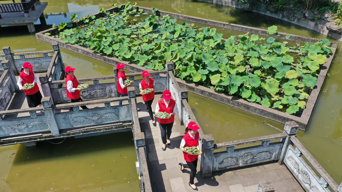 6月5日,在位于四川省南充市蓬安县周口街道下河街社区的“濂溪祠”,蓬安县纪委监委组织的党员干部正在朗诵《爱莲说》。