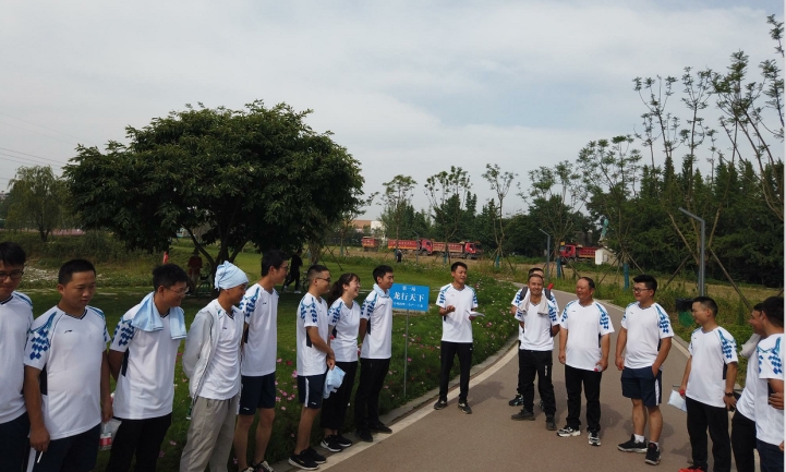 上午10时,项目职工齐聚办公区小广场,伴着《敢为天下先》的音乐、踏着节奏,以饱满的状态进入活动现场,约40人的队伍沿着彭州官渠郊野公园步道前行,井然有序的队伍形成了一道亮丽的风景。