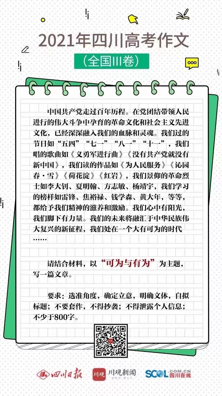 今年四川高考作文题目已经出炉:结合材料,以“可为与有为”为主题,写一篇文章。不少“吃瓜群众”纷纷表示“一个字也写不出来!”