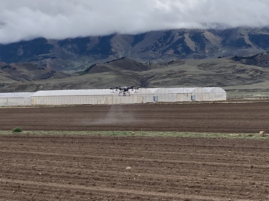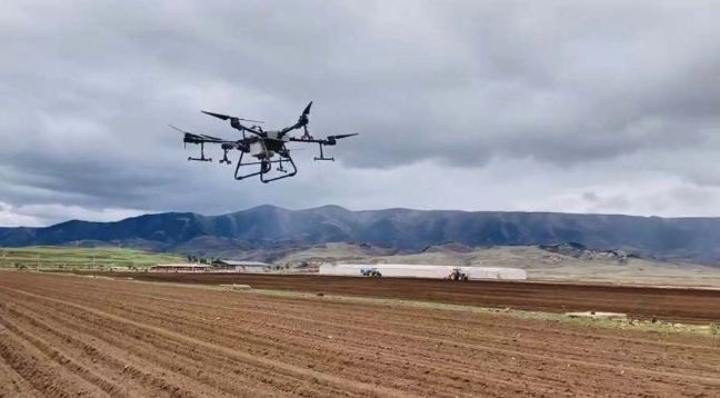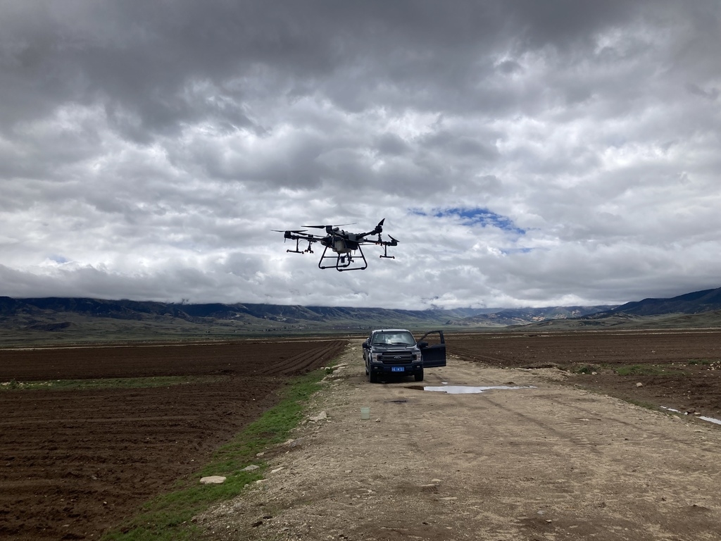6月7日,在海拔3600多米的四川省理塘县濯桑现代农业产业园区万亩生态萝卜种植基地,康藏阳光农牧业科技公司正在开展无人机播撒有机肥作业,所使用的无人机,是被称为“如今市面上综合性能最强大的”“数字农业新旗舰”大疆T30植保无人机。