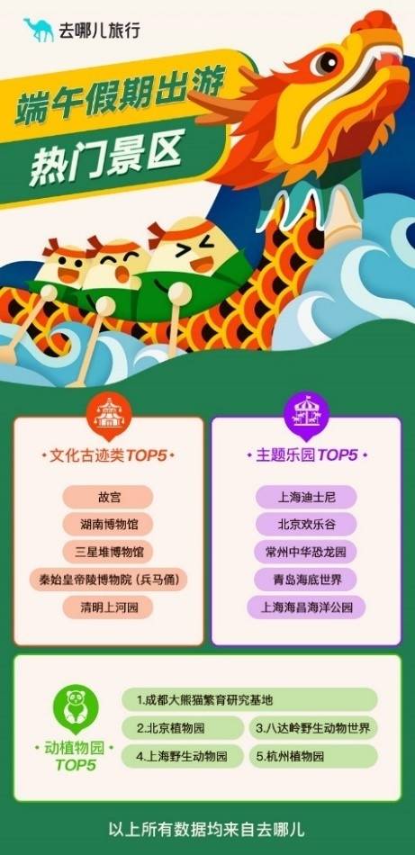 近年来,随着文博探索类节目的热播,端午出行,文化古迹类景区受追捧。去哪儿数据显示,2021年端午假期,搜索文化类景区的用户中近半数是95后和00后用户,穿上汉服、去景点打卡成为95后和00后的“团建项目”。故宫、湖南博物馆和三星堆博物馆成为搜索热度最高的三个文化古迹类景区。