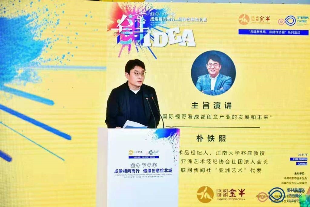 6月9日,韩国亚洲艺术经纪协会社团法人会长朴铁熙将“韩流”跨越式发展的经验,带到了成都市金牛区“成渝相向而行·借缕创意绘北城——金牛下午茶”专题活动现场,他还对成都如何发展文创产业提出了4点建议。