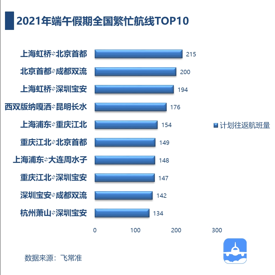 端午假期将至,据“飞常准”大数据统计,端午小长假(6月12日至14日)期间,国内飞国内计划出港航班约4.57万架次,较2019 年航班量提升34.35%,超过疫情前同期水平。假期中,上海浦东国际机场或成最繁忙机场,成都双流国际机场排前三,而广州白云国际机场因受疫情影响,排名跌出前十。