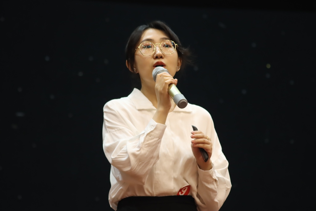“励器悟道长且远,党员誓言伴我前……”6月9日下午,四川文化传媒职业学院崇州校区小剧场的舞台上,来自学前教育学院的谷斌老师正在做题为《励学术之器,悟诗魂之道》的主题演讲。来自该校各院系的12名青年教师正在参加“庆祝建党一百周年 我把青春献给党”青年教师风采大赛的校内赛。学院领导及各系部师生代表200余人来到现场“观战”,学院官方抖音进行同步直播。