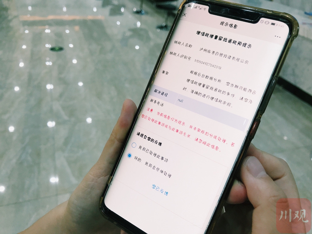“头天办理,第二天就退税了。真的太快了!大大缓解了公司的资金压力。”6月10日,谈起不久前办理增值税增量留抵退税的经历,泸州临港自贸投资有限公司财务负责人倪贤容很是欣喜。