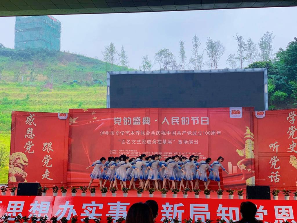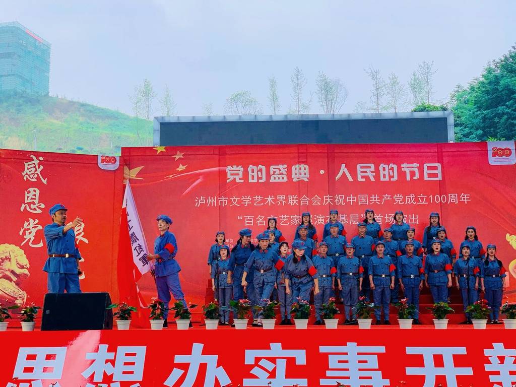 6月10日,为庆祝中国共产党成立100周年,由泸州市文学艺术界联合会(以下简称:泸州市文联)主办的“百名文艺家巡演在基层”文艺活动进行了首场演出。现场,最年长的81岁,最小的仅14岁,老艺术家们带着小文艺爱好者们同台演出,共同唱着这首歌。