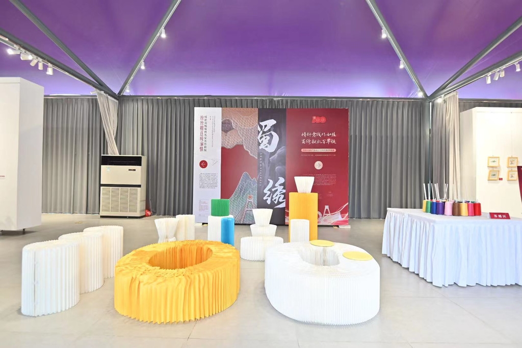 活动启幕当日,在成都音乐坊潮音梦工厂展厅,一幅幅以红色印记为题材的蜀绣作品如画卷般缓缓展开波澜壮阔的百年党史。