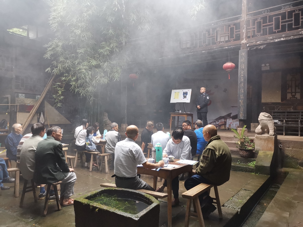 这里提到的“法治茶馆”,与真正的茶馆有所区别。合江县公安局尧坝派出所所长胡江涛介绍,尧坝派出所推广的“法治茶馆+”模式,是组建了“枫警宣讲团”,以古镇景区著名景点“大鸿米店”作为法治茶馆宣讲主阵地,逐步将法治宣传延伸到辖区企事业单位、中小学校园、乡村聚居点、农村院坝田坎,通过开展校园安全、禁毒、防邪、防电诈、森林防灭火等宣传活动,依托古驿骑兵、反电诈联盟、商圈联盟、村社“吹哨”队伍等群防群治组织切实加强法治宣传和防范教育,全面提升辖区群众法治思想意识。