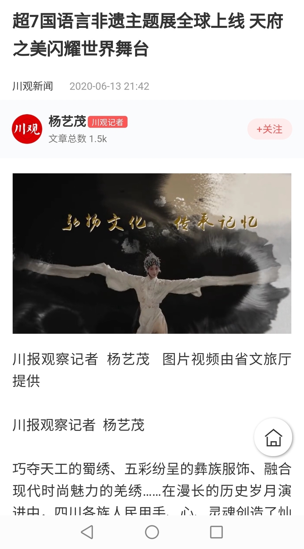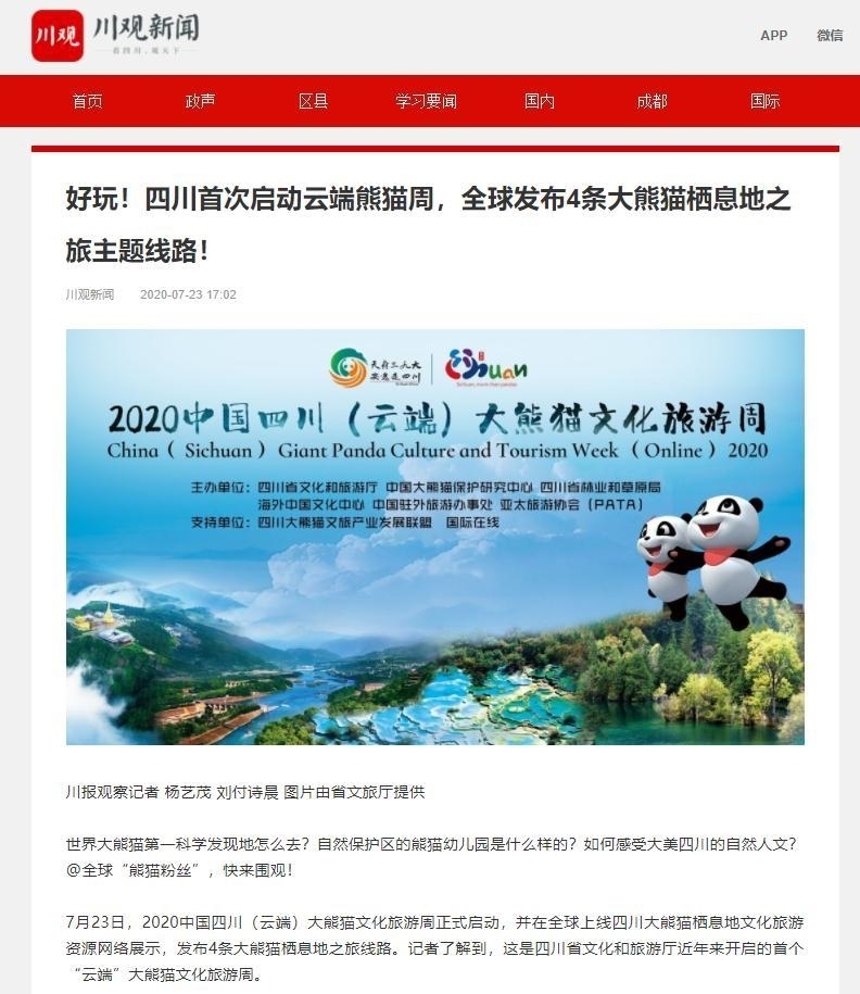积极主动对外宣传,以四川事实讲好中国故事,推介美丽四川。围绕 “天府四川,云享非遗”线上主题展,推出《超7国语言非遗主题展全球上线》新媒体稿件,让海内外网友在“云”端邂逅四川非遗之美。