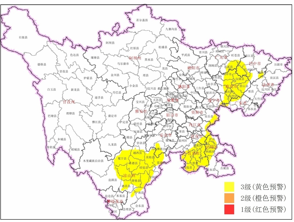 6月16日,四川省地质灾害指挥部办公室结合四川省气象台天气预报情况,发布如下预警:6月16日20时~6月17日20时,全省地灾气象风险预警范围进一步扩大,共涉及13各市州,川东北、川南、攀西地区等均有部分地区进入预警范围。