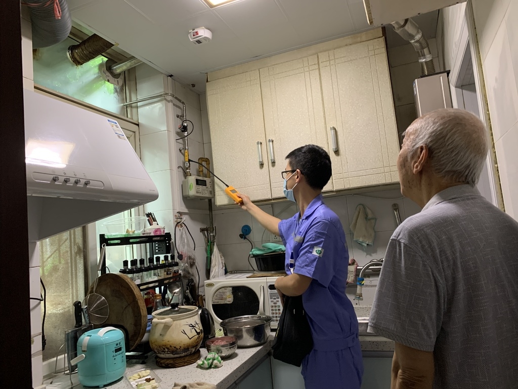 6月16日,记者跟随成都燃气来到了金牛区电子十所家属区,两名安检人员正在为该小区6栋的一户孤寡老人家里进行两年一次的燃气安全检查。