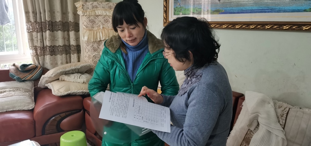 记账户正在“研究”记账(江阳区百子图社区供图)