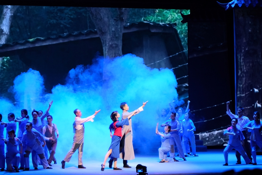 “一条大河波浪宽,风吹稻花香两岸,我家就在岸上住……” 红旗飞舞,歌声嘹亮,熟悉的旋律让大家重温着红色岁月。为庆祝中国共产党成立100周年,6月17日下午,《党的光辉照我心》大型群众文艺演出在省川剧院剧场举行。本场演出由四川省文旅厅社会组织联合党委指导、四川省文化院团联合会主办、省文化院团联合会志愿者分会承办。专业文艺工作者、业余文化活动积极分子和省院团文化志愿者等近500名演员参加了这次演出,大家共同欢庆党的生日。