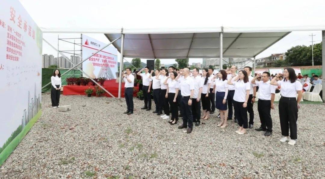 四川在线消息(李华琼 孙天赐 记者 郝勇)6月17日,成都兴城集团下属成都建工八建公司主办的“安全生产月”“安康杯”竞赛活动在西川汇锦都(一期)项目工地举行。