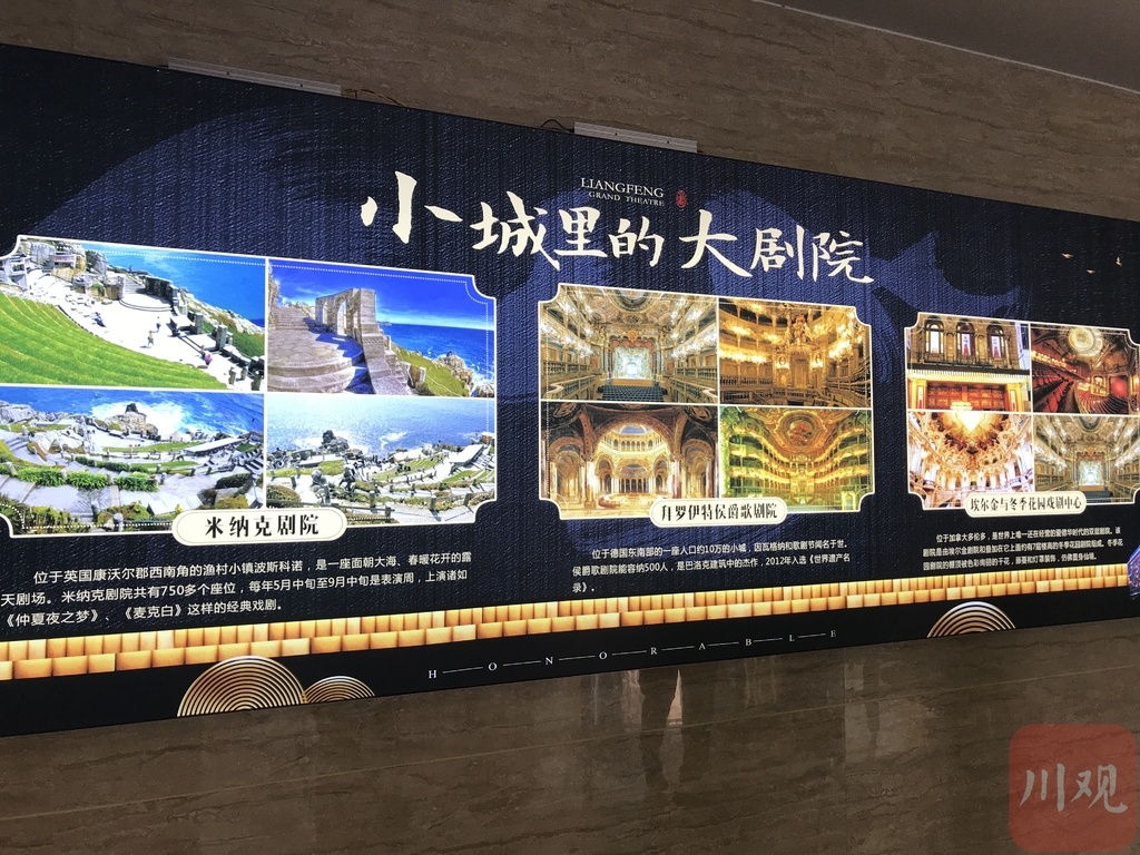 走进大厅门口,“小城里的大剧院”几个字十分醒目。墙上显示屏的画面,是莲峰大剧院对标学习对象:英国的米纳克剧院、德国的拜罗伊特侯爵歌剧院、加拿大多伦多的埃尔金与冬季花园戏剧中心。
