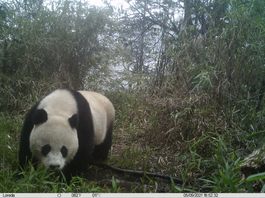 随着栖息地生态保护力度加大,大熊猫越来越频繁地出现在监控镜头里。在龙池小草坡区域,每个季度都能拍到大熊猫活动的身影。今年3月15日采集到的视频里,一只雄性野生大熊猫面对红外相机镜头,专心致志地吃着竹叶,丝毫没有察觉自己暴露了“隐私”。“野生大熊猫这样长时间正面面对镜头吃竹子的画面非常难得,我从事保护工作几十年,也就这么一个”龙池管护站站长朱大海介绍说。