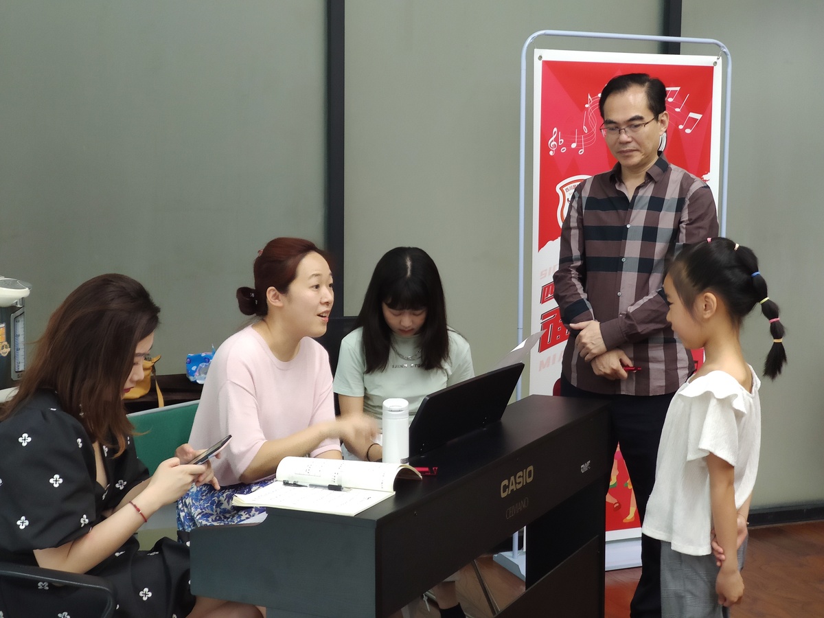 面试还没开始,已经有不少小朋友和家长前来等候啦。当天9点半面试开始,本次面试分为两个部分。小朋友们先分组进入面试考场,介绍自己,然后选择自己喜欢的歌曲清唱,再来到试音区,测试音准和节奏,完成整个面试。