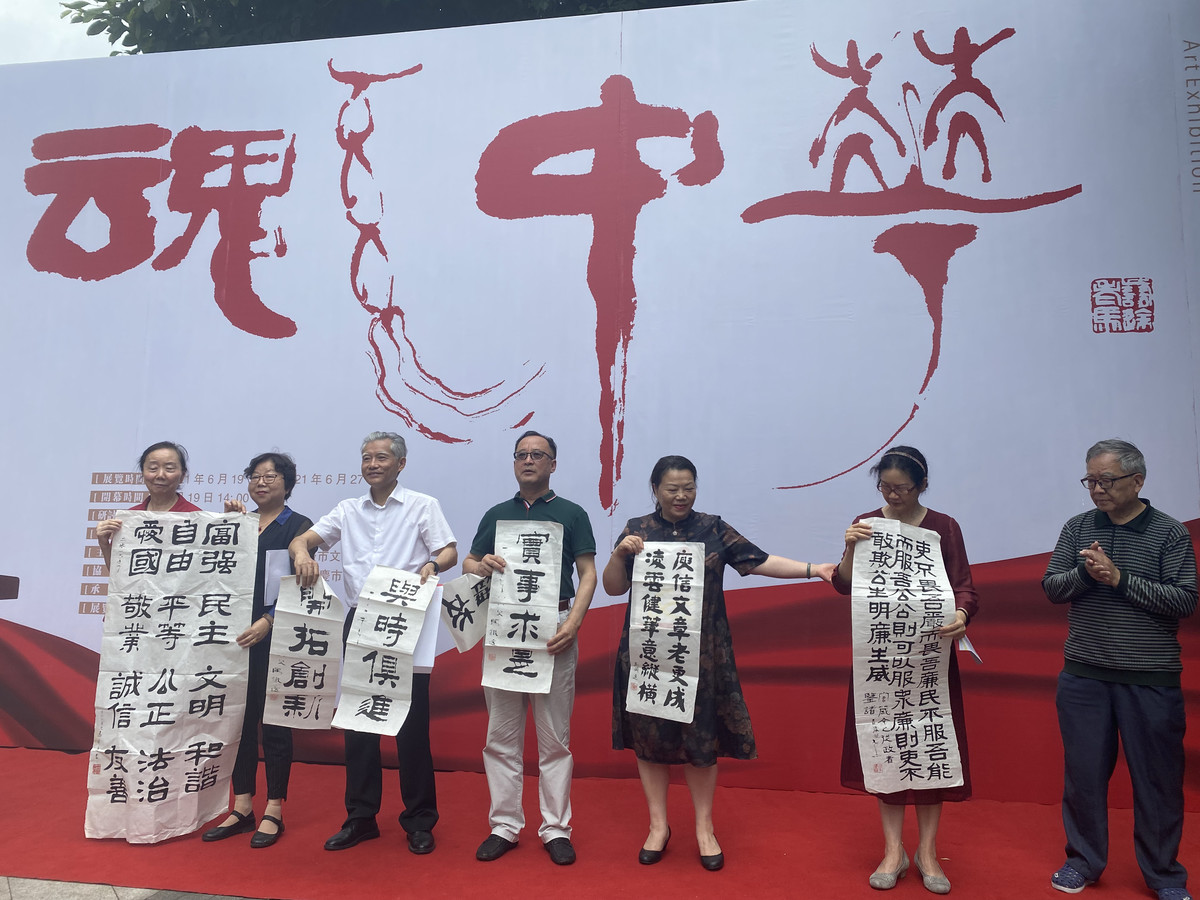 6月19日下午两点,《魂系中华——马识途书法展》在重庆市文联美术馆开幕。来自北京和巴蜀两地的文化界、书法界的嘉宾,以及马老的至亲好友、忠县的家乡人等近百位嘉宾齐聚于此,共同见证这一文坛盛事。